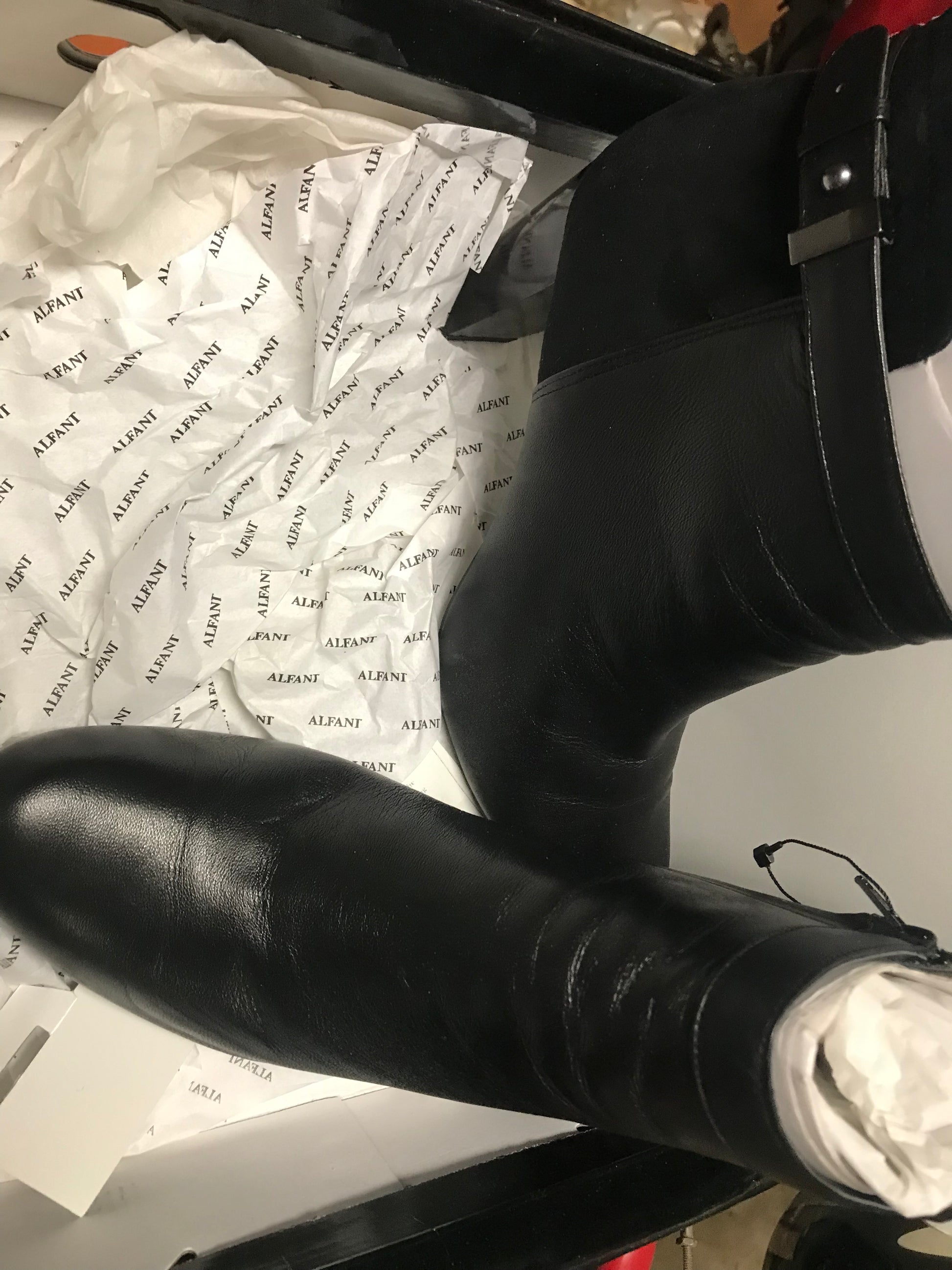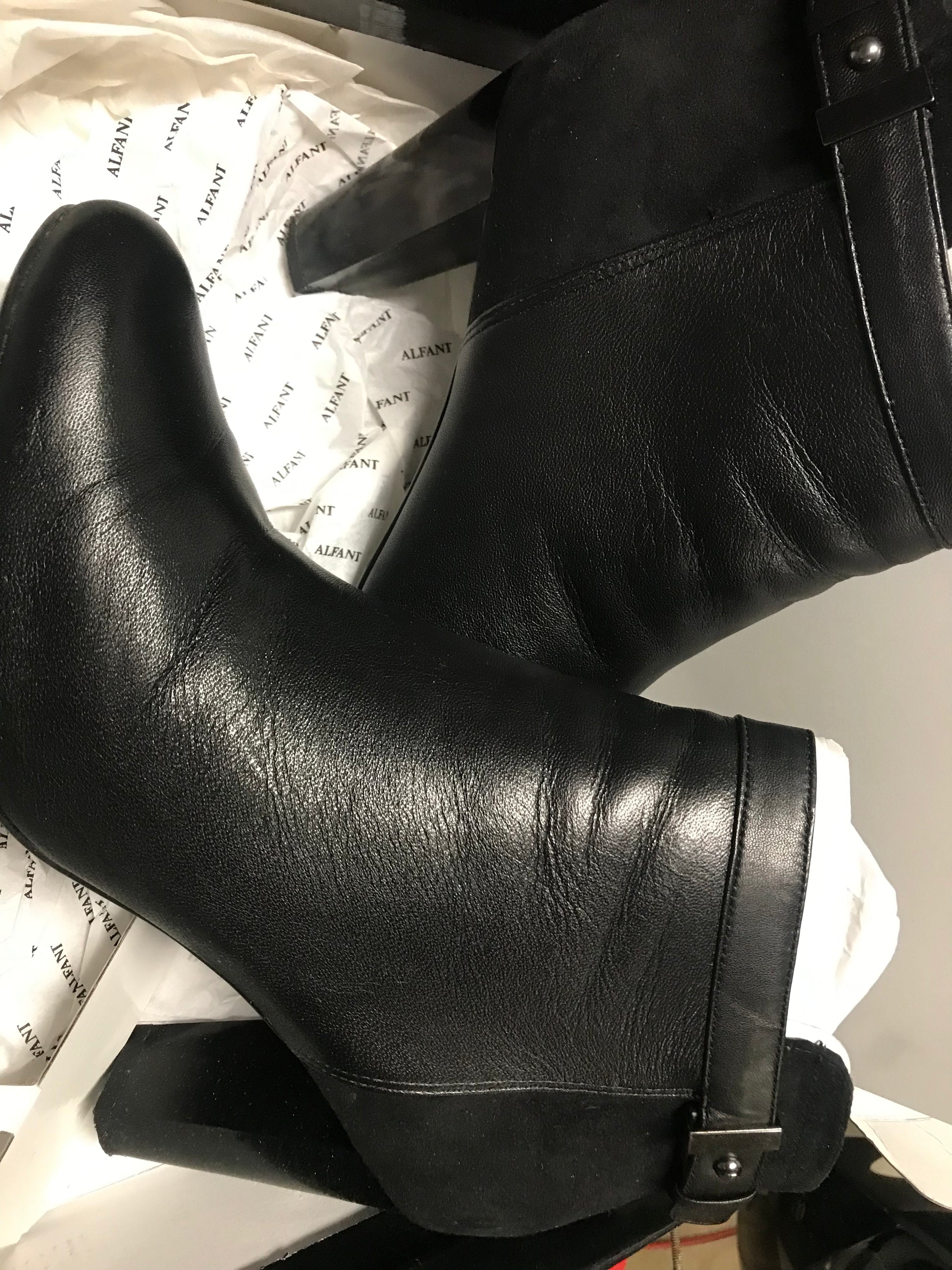 Black leather bootie. Hardly any wear. Comfortable shoe.